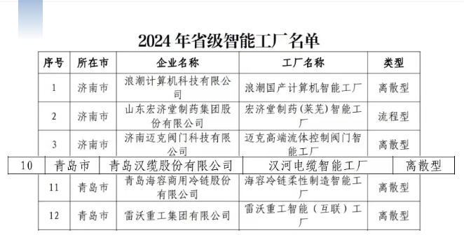 青島漢纜股份有限公司成功入選山東省級(jí)智能工廠