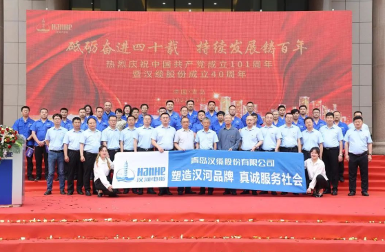 7月1日,在中國共產(chǎn)黨成立101周年華誕之際,青島漢纜股份有限公司迎來成立40周年,在這隆重喜慶的日子里,股份公司組織了盛大的慶典儀式。公司創(chuàng)始人漢河集團(tuán)董事局張思夏主席,功勛人物獲得者陳沛云先生、張學(xué)宏先生,集團(tuán)公司張大偉董事長受邀出席。股份公司張立剛董事長,張林軍總經(jīng)理及各個(gè)部門領(lǐng)導(dǎo)及員工代表參加慶典活動(dòng)。