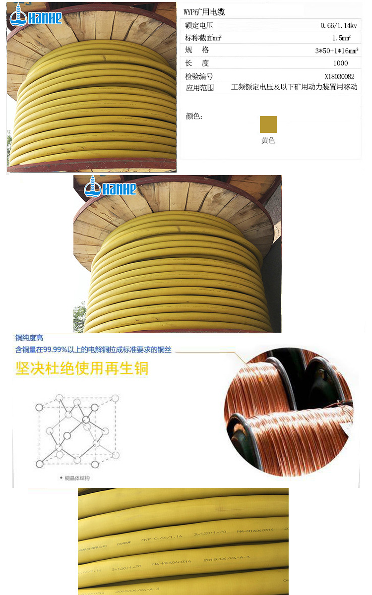 ● 工頻額定電壓U0/U為380/660V、660/1140V、1.9/3.3kv、3.6/6kv、6/10KV、8.7/10KV、300/500V。